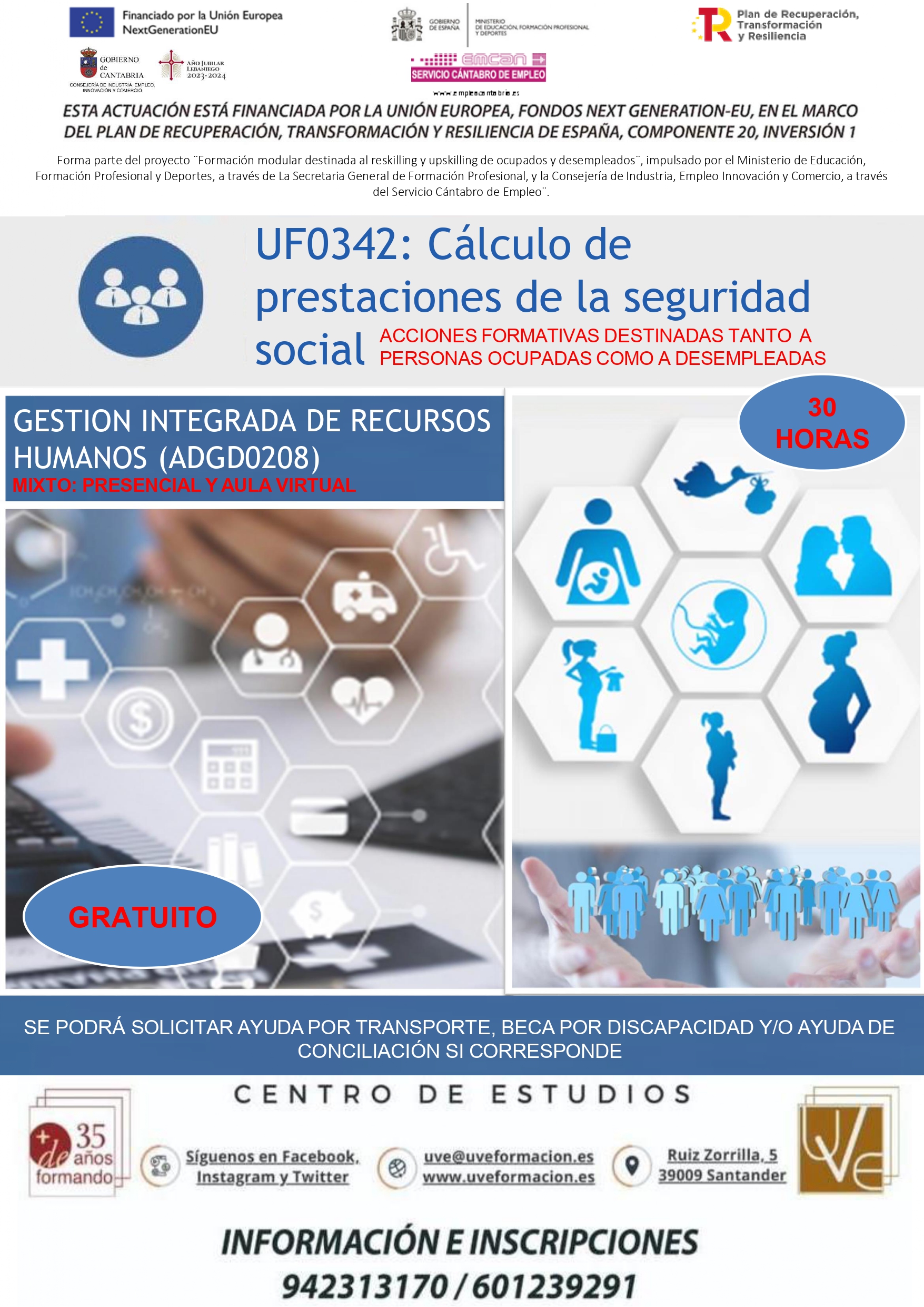 UF0342 Cálculo de prestaciones de la Seguridad Social. ¡¡¡Comienzo inmediato!!!